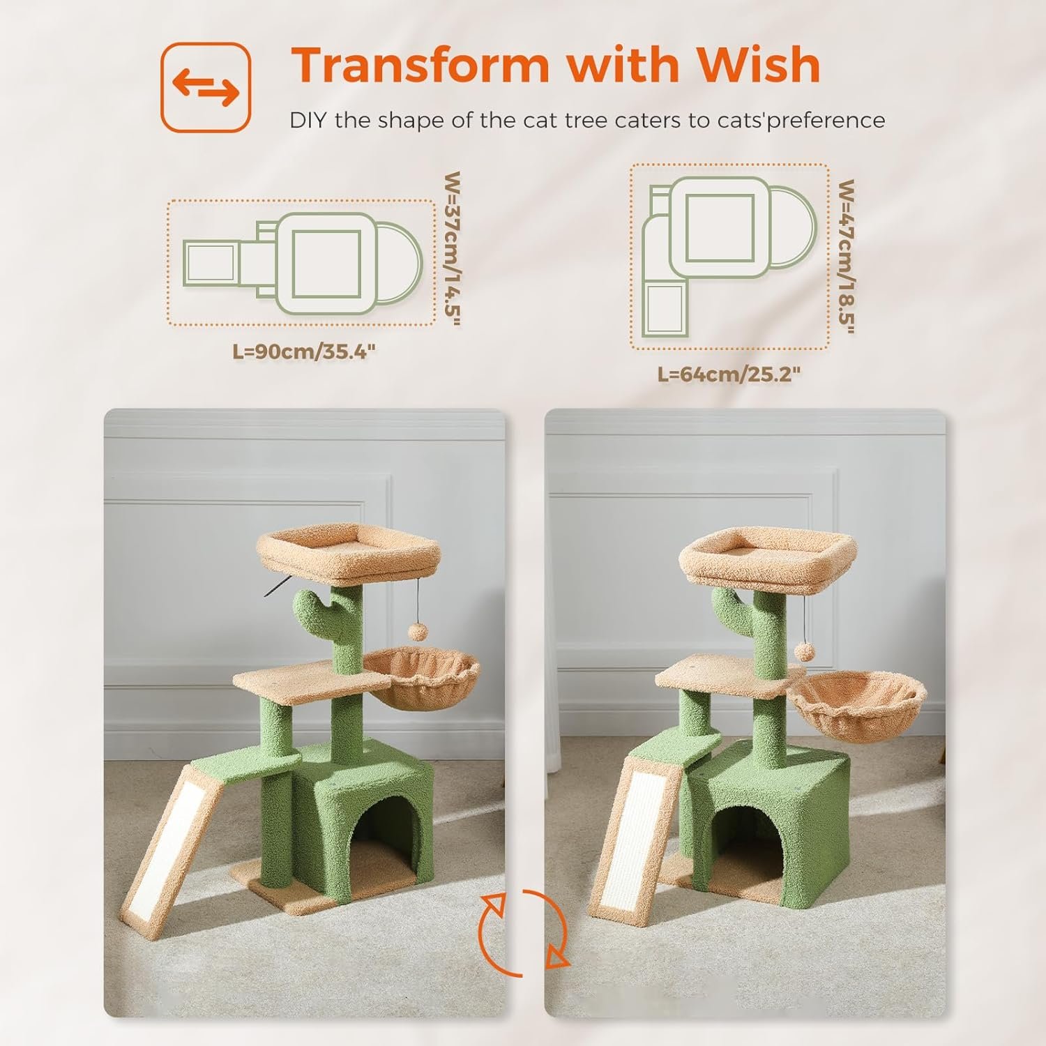 - Compact and Stylish: This cute cat tree for indoor cats is designed to fit in any space without compromising on fun and functionality. The stylish cactus cat tree design adds a touch of whimsy to your home decor.